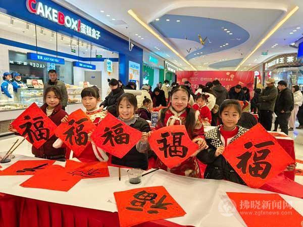 1月19日,小朋友們在宿城吾悅廣場為市民書寫“?!弊帧?/p>