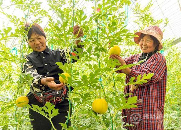 近日,在碭山縣程莊鎮柴市村瓜菜產業綜合體基地內,農民正在打理西甜瓜。據悉,該村瓜菜產業綜合體基地占地120畝,總投資900萬元,配套遠程監控和水肥一體化設施,實現全流程智能化管理。基地打造“西瓜+旅游+文化”新型業態模式,帶動上下游產業協同發展,為周邊300余名村民提供了就業崗位,走出一條可持續發展的鄉村產業振興之路。記者 馬峰 蘇洋 攝