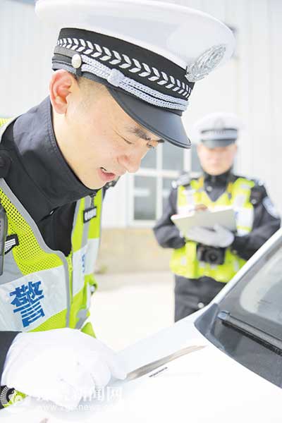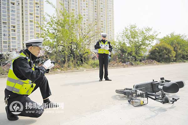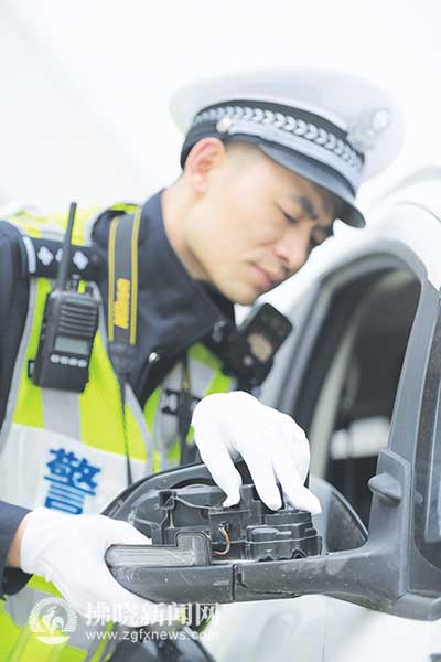 4月27日,張恒菖對肇事車輛的碰撞痕跡進行勘驗,然后向指揮中心匯報情況。