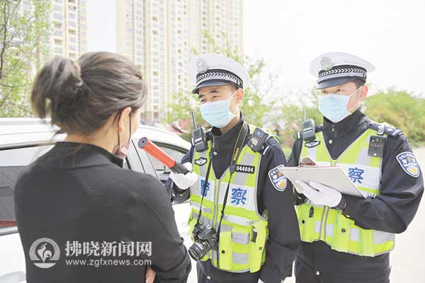 4月27日,張恒菖(左)對肇事駕駛員進行酒精檢測。
