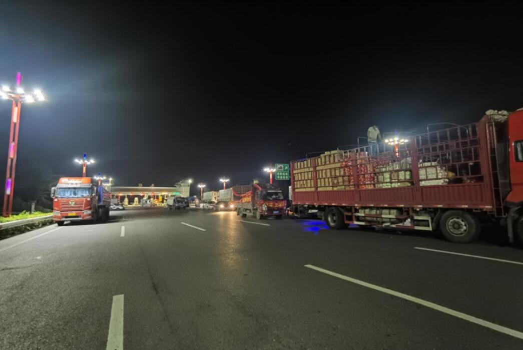 3日凌晨,在鹽洛高速泗縣收費(fèi)站,不時(shí)有運(yùn)送礦泉水、蔬菜、方便面等物資的車(chē)輛進(jìn)入泗縣。除了必要的疫情防控車(chē)輛,路上幾乎見(jiàn)不到其他車(chē)輛。
