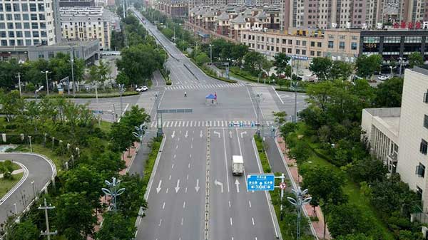 疫情下的泗縣街頭,偶有車輛來往。當地要求交通干道和保供運輸車輛要確保暢通,不得擅自阻斷或關閉高速公路和普通公路,不得硬隔離縣鄉村公路,不得擅自關停高速公路服務區。貨運車輛閉環管理,點對點運輸。