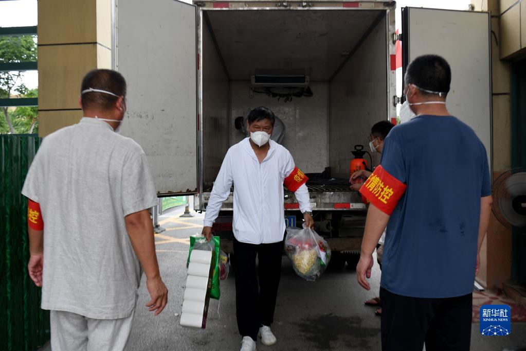 7月4日,泗縣玉蘭小區工作人員接收居民的訂單物資。