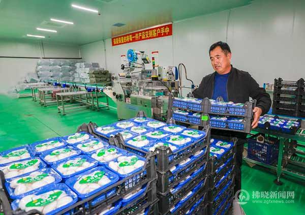 10月9日,在靈璧縣楊疃鎮食用菌生產基地,工人正在裝運雙孢菇。記者 蘇洋 攝