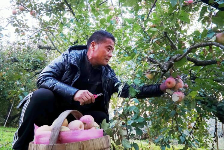 “今年蘋果長得不錯,色澤飽滿、含糖量高,價格也不錯。”農(nóng)場負(fù)責(zé)人楊前進(jìn)正忙著為山東臨沂上門收購的果商采摘蘋果,豐收的喜悅盡收眼底。