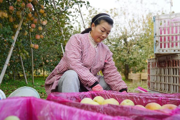 立冬漸寒,蘋果飄香,11月16日,走進(jìn)安徽省宿州市碭山縣碭城鎮(zhèn)蔣營村森沃家庭農(nóng)場蘋果園,目光所及之處皆是累累碩果,一個個鮮紅透亮、飽滿圓潤的蘋果壓滿枝頭,果園里處處彌漫著香甜氣息。