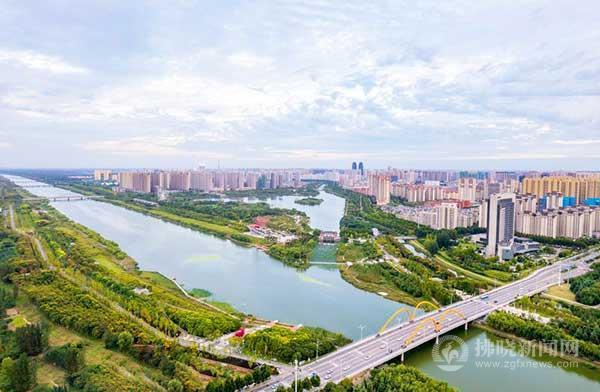 記者航拍的宿州市新汴河風景區。記者 蘇洋 攝
