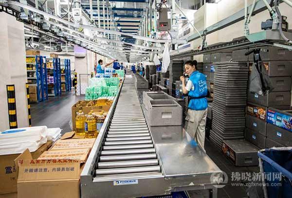 10月10日,宿州吾悅廣場盒馬鮮生員工在倉儲中心“線上+線下”智慧配送流水線作業(yè)。今年以來,我市以培育零售新業(yè)態(tài)為抓手,通過首店經(jīng)濟、商文旅融合以及智慧配送等模式,不斷創(chuàng)新消費新場景,打造城市消費新地標,推動商貿(mào)零售業(yè)向新模式迭代升級。記者 馬峰 攝