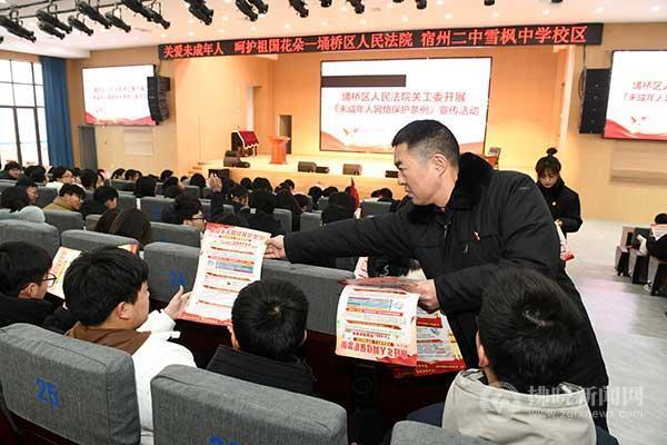 12月28日上午,埇橋區(qū)法院法官在宿州二中雪楓中學(xué)校區(qū)宣講《未成年人網(wǎng)絡(luò)保護(hù)條例》?!段闯赡耆司W(wǎng)絡(luò)保護(hù)條例》將于2024年1月1日起施行,埇橋區(qū)法院組織法官深入轄區(qū)中小學(xué)校園進(jìn)行大力宣講,進(jìn)一步增強(qiáng)未成年人使用網(wǎng)絡(luò)、文明上網(wǎng)的安全意識(shí)、法治意識(shí)。阮傳寶 攝