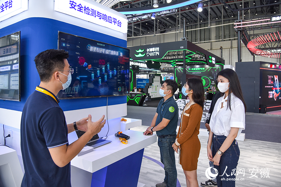 工作人員向參觀者介紹安全檢測(cè)與響應(yīng)平臺(tái)。人民網(wǎng) 李希蒙攝